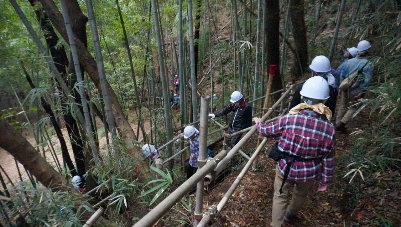 この日の研修では、地元で里山の管理を行う株式会社nuucotoと、環境教育に取り組む認定NPO法人JUON NETWORKの協力のもと、竹の間伐体験が実施されました。参加者は急斜面で竹を伐採しながら、「自然を守る作業の大変さを実感した」「地域の力があってこそ里山が維持されている」と語りました。