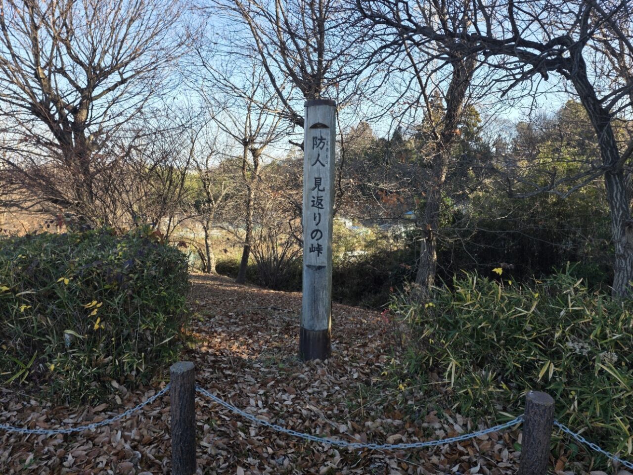 コース中ほどに位置する「防人見返りの峠(多摩丘陵パノラマの丘)」は、このコースのハイライトと言えるでしょう!かつて九州の太宰府へと向かう防人が、故郷を振り返り最後の別れを惜しんだと伝えられる場所です。この峠からは、天気が良ければ富士山や丹沢、奥多摩や秩父の連山を一望できます。特に空気が澄み渡る冬の時期は、より鮮やかな眺望を楽しめます。