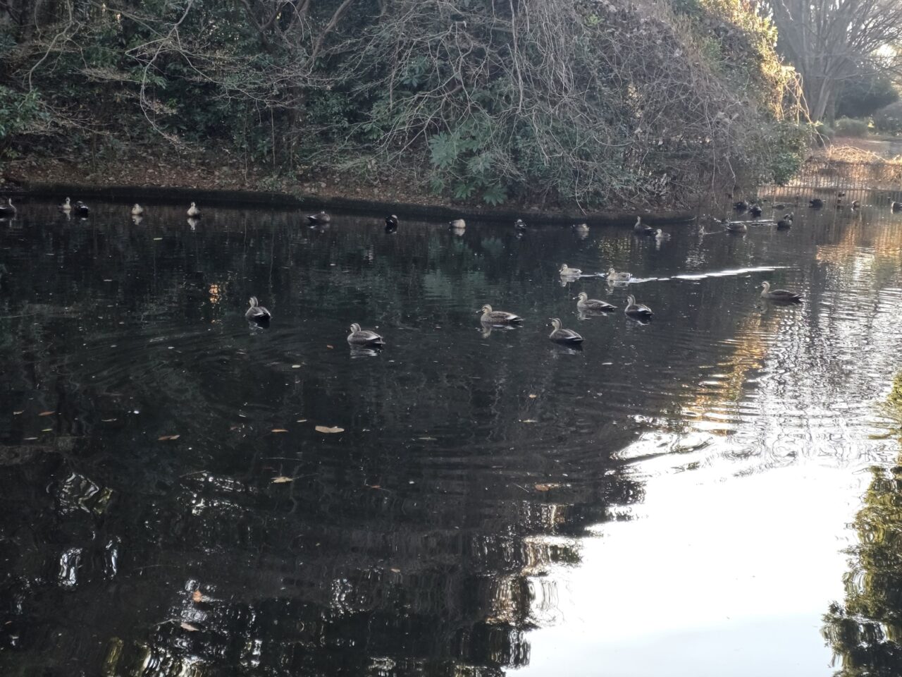 水辺には季節によって多くの鴨が飛来し、その愛らしい姿を間近に観察することができます。