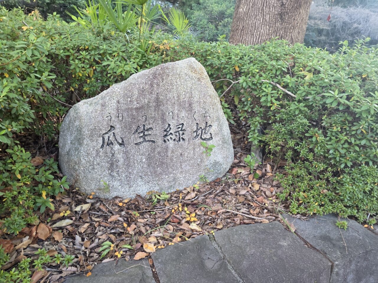 鎌倉街道に面した瓜生緑地は、色とりどりの花や樹木が魅力的な、細長く続く公園です。