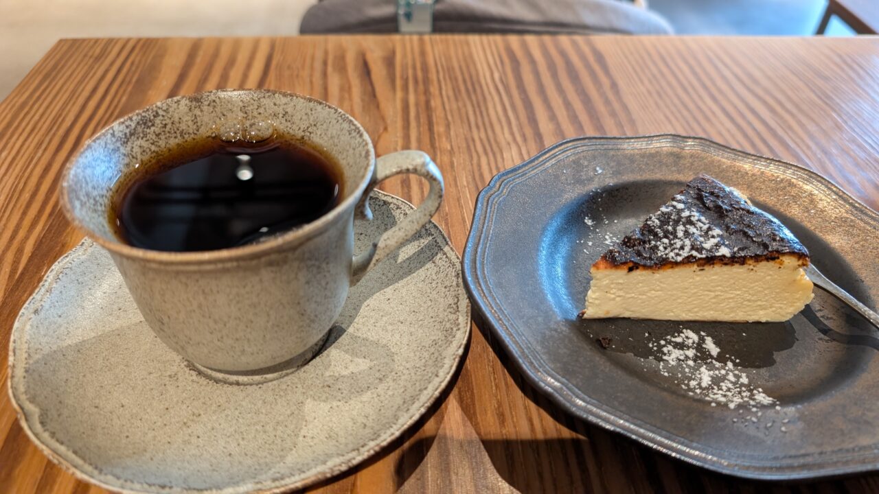 バスクチーズケーキはしっとり滑らか、甘さ控えめでとても美味しく、スペシャリティコーヒーの味をさらに引き立ててくれました。