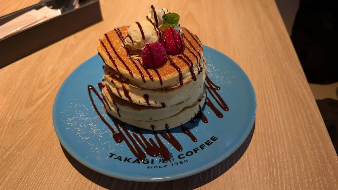 店員さんに初めての来店である旨をお伝えすると、看板メニューのパンケーキをお勧めされました。注文を受けてから一枚ずつ焼いているので少しお時間がかかるそうです。実は高木珈琲は「パンケーキに最も合うコーヒーを」という想いから生まれたカフェなんだとか♪