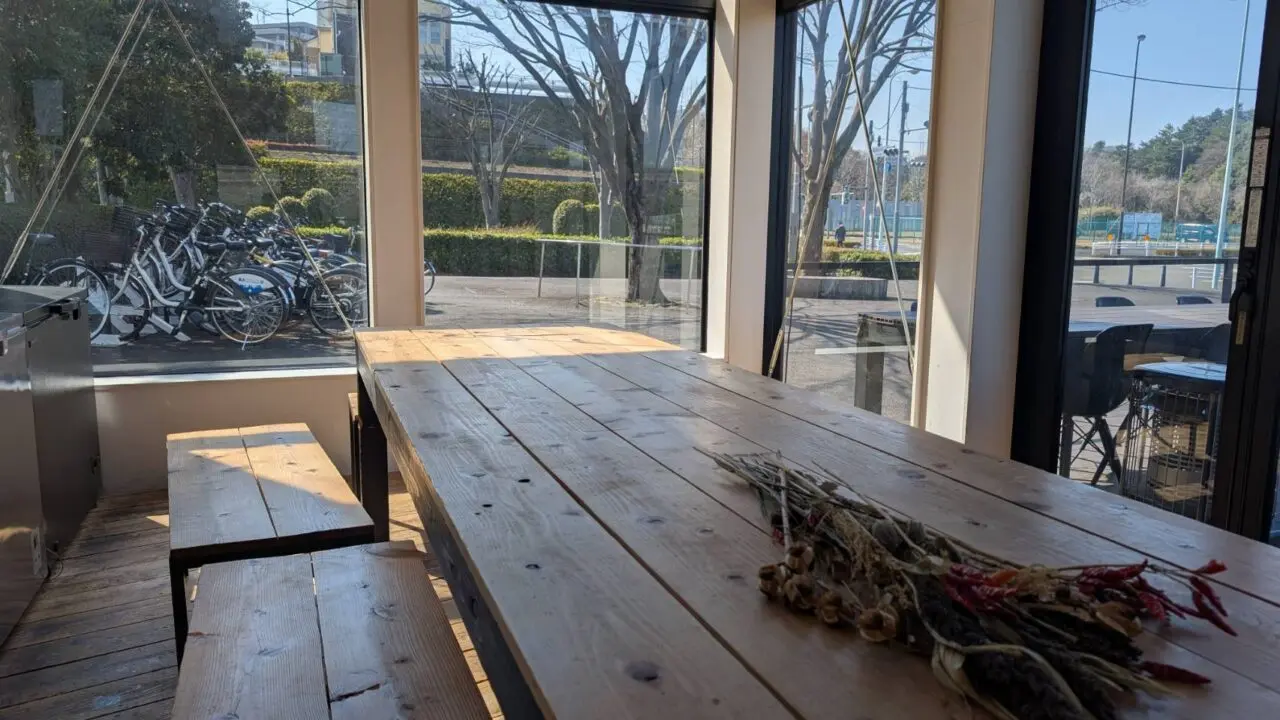 店内は、4メートルはあろうかと思える長机が2つ並び、相席スタイルになっています。筆者が訪れた際には、テーブル中央にドライフラワーが彩られ、シンプルながらもスタイリッシュさが光る、インテリアとなっていました。店内には心地よいレコードの音楽が流れ、どこか非日常感を味わえます。(筆者が訪れた時間帯は、ビリー・ジョエルの曲が流れていました)