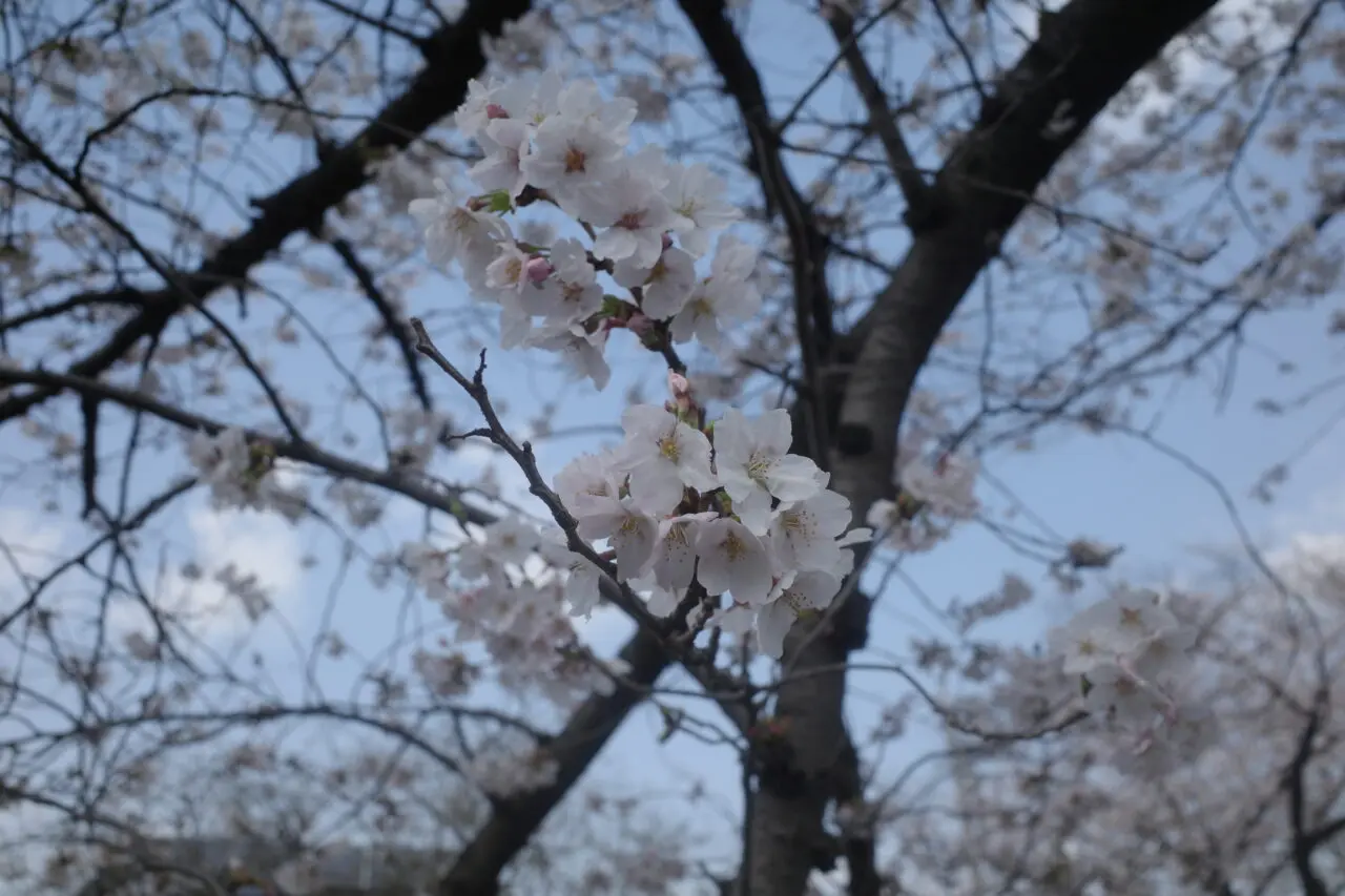 一部分は、川面にせり出すように咲く桜のトンネルのようになっており、立ち止まって写真を撮る方の姿が多くみられました。
