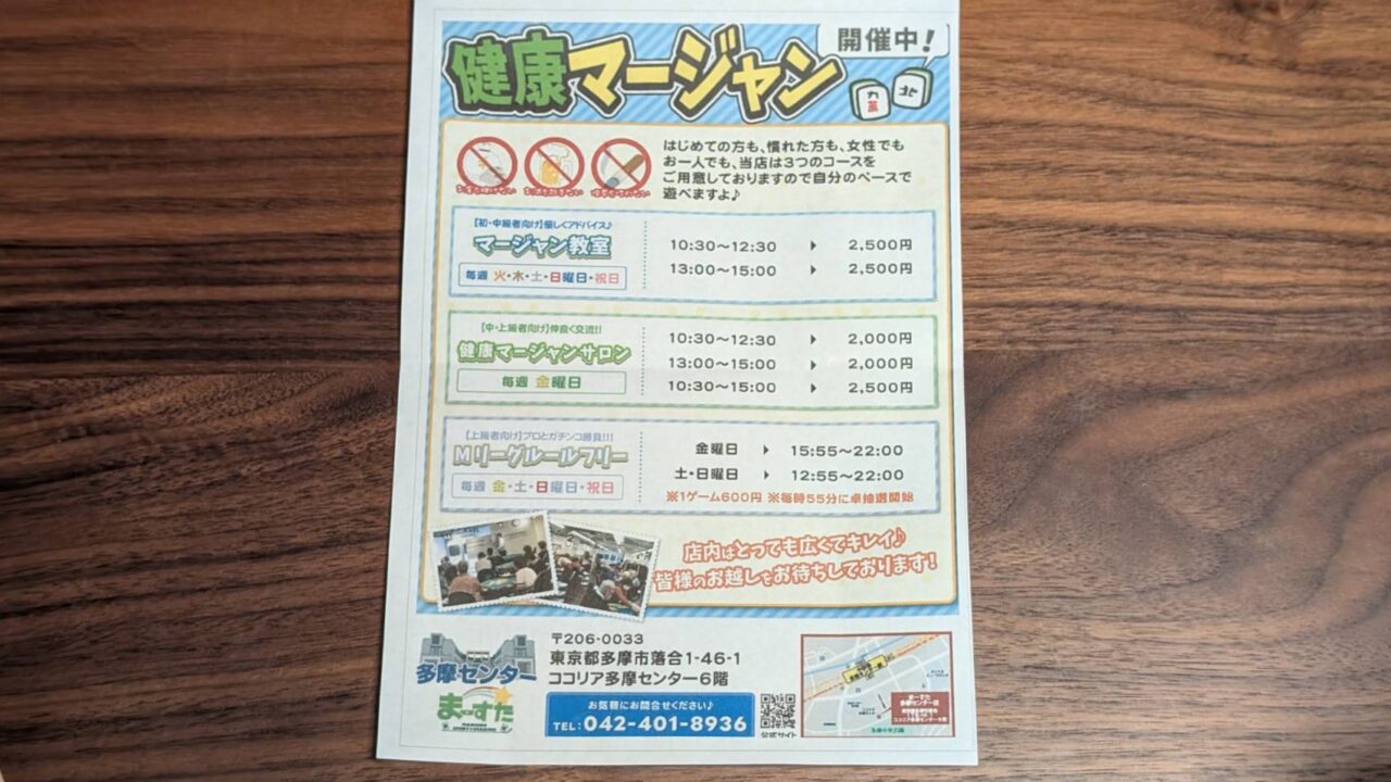 【多摩市】ココリア多摩センター6階に、健康に楽しめる雀荘「まーすた」が新規オープンしています!